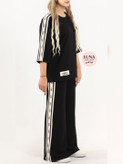 ست شامل یک تیشرت باکسی به قد 68 سانت و شلوار بگ به قد 105 سانت با جنس گلکسی اعلا و خرجکار کنفی.