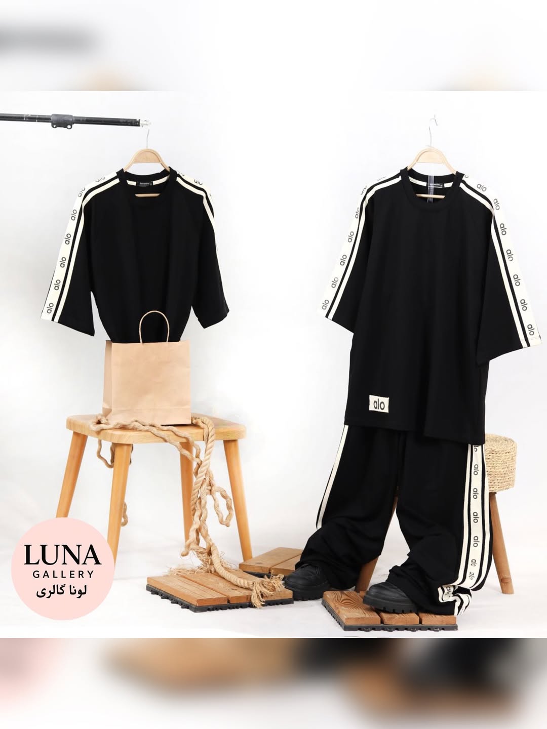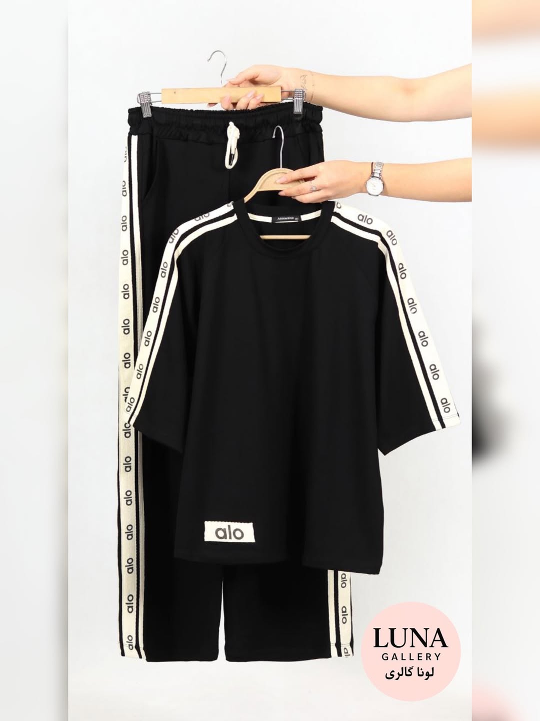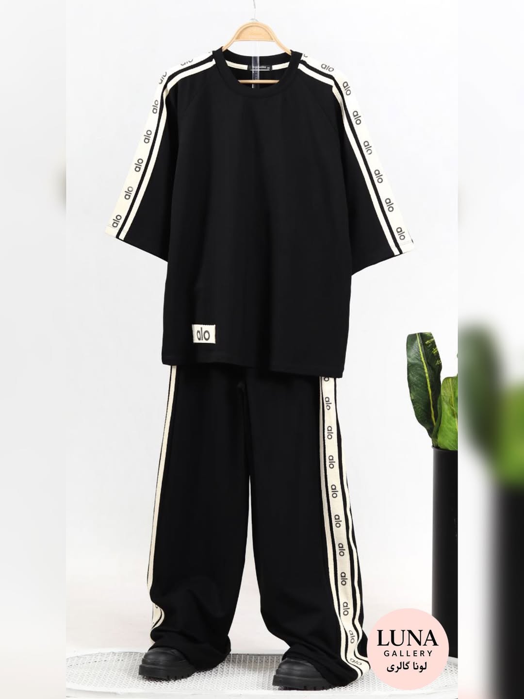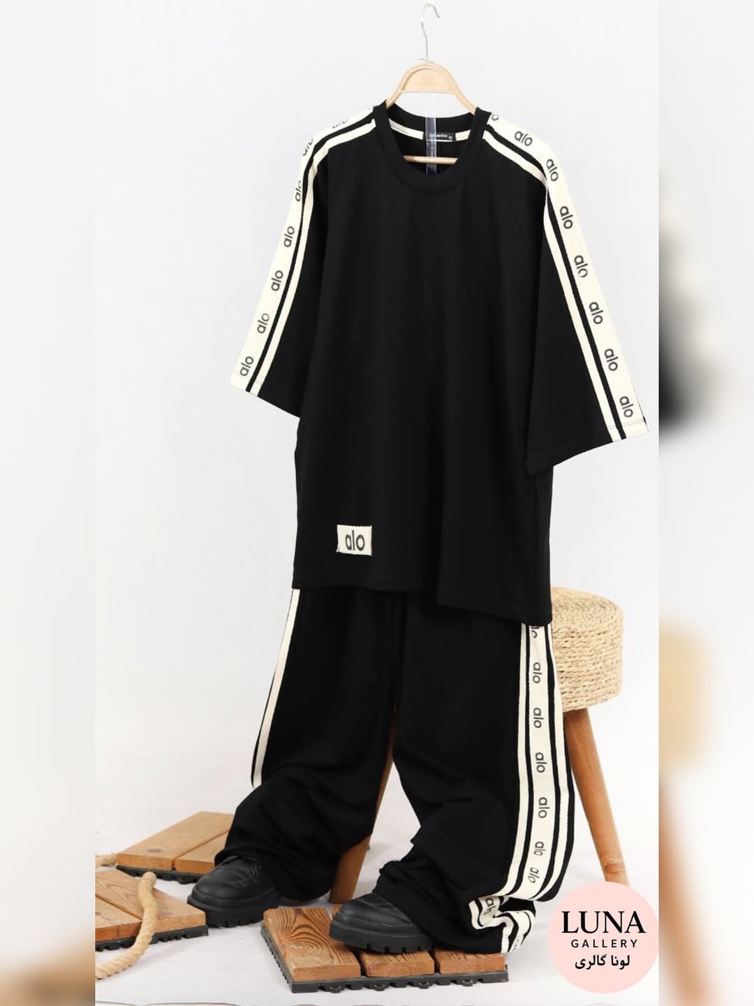 ست تیشرت باکسی و شلوار بگ alo سایزفری 38_46