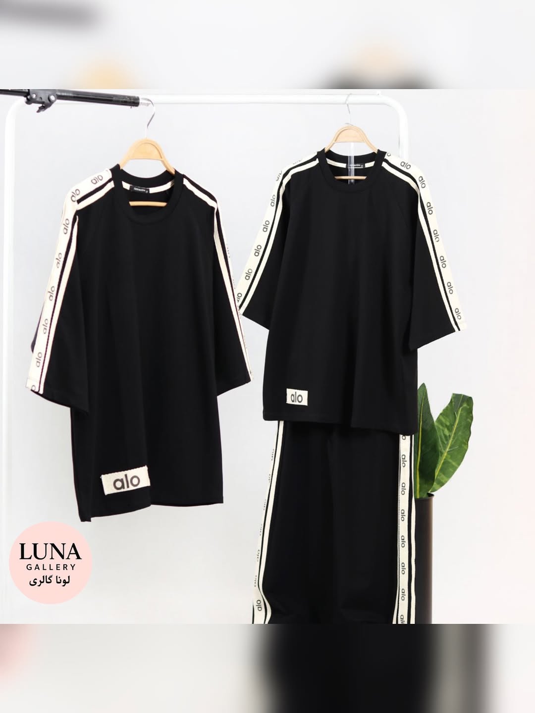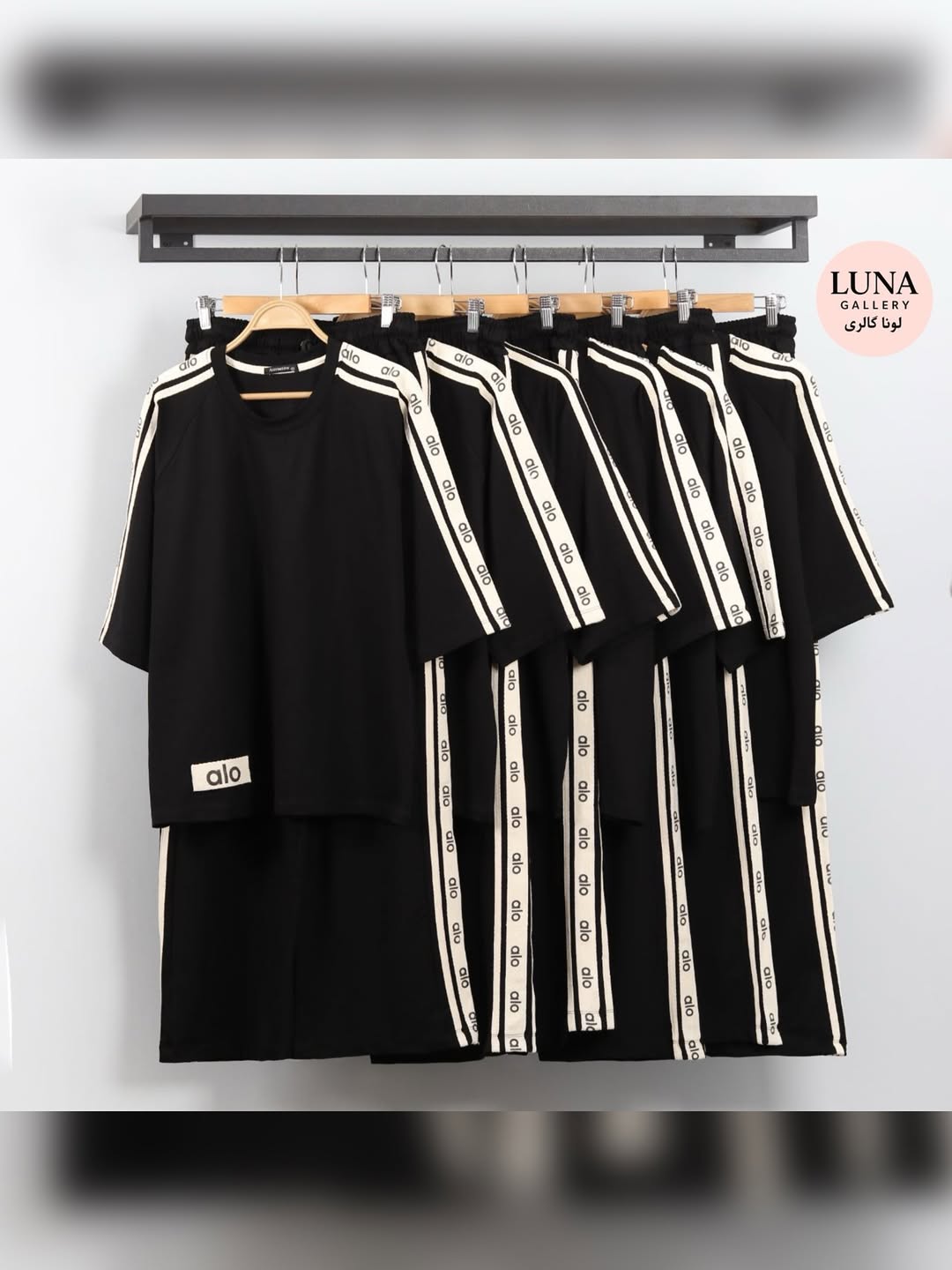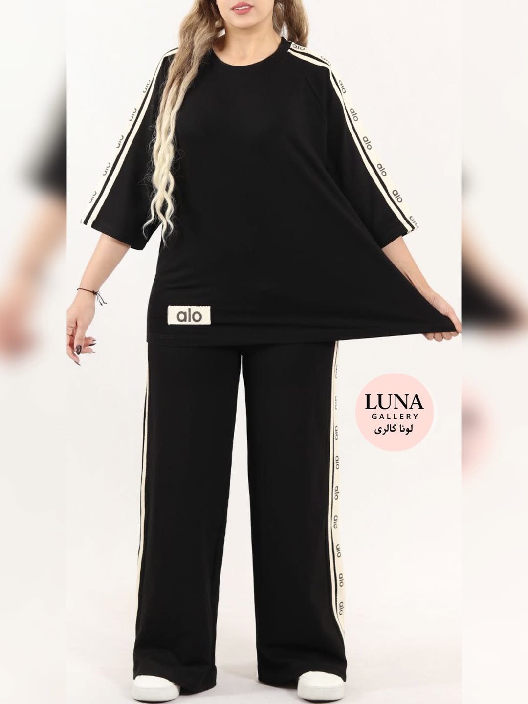 ست تیشرت باکسی و شلوار بگ alo سایزفری 38_46
