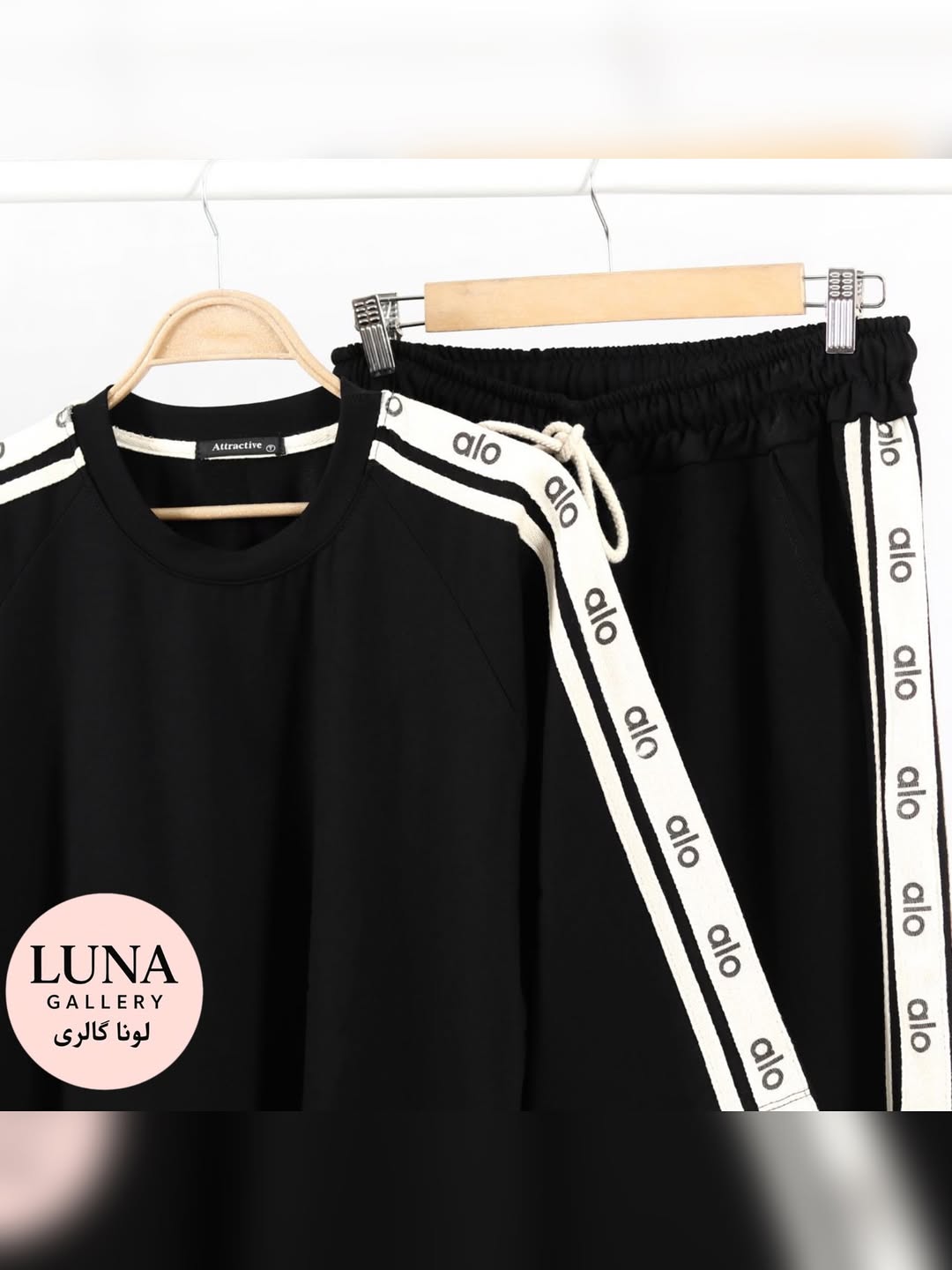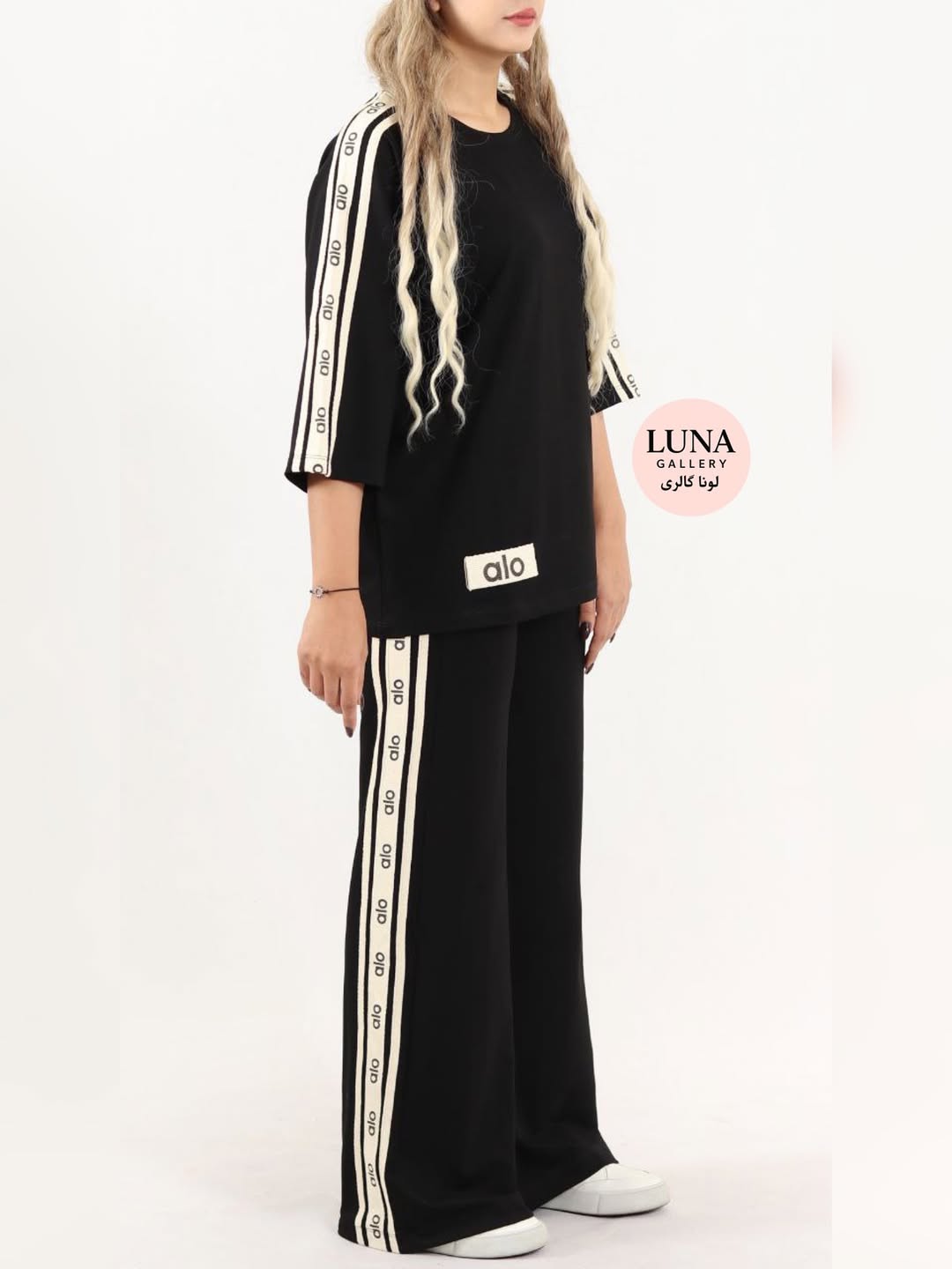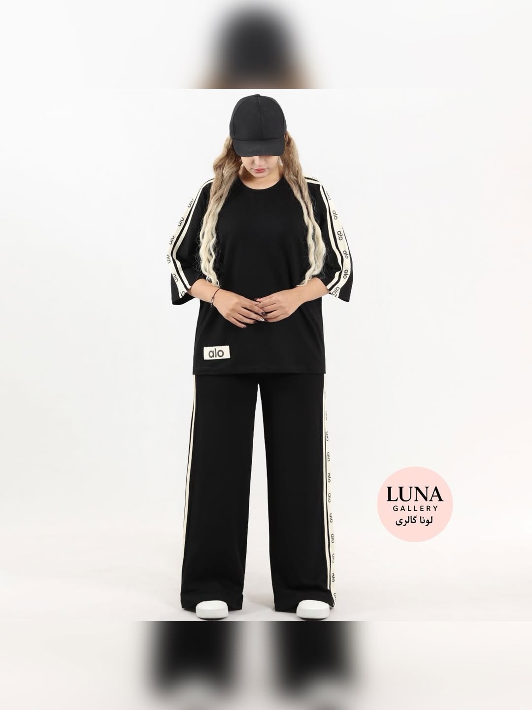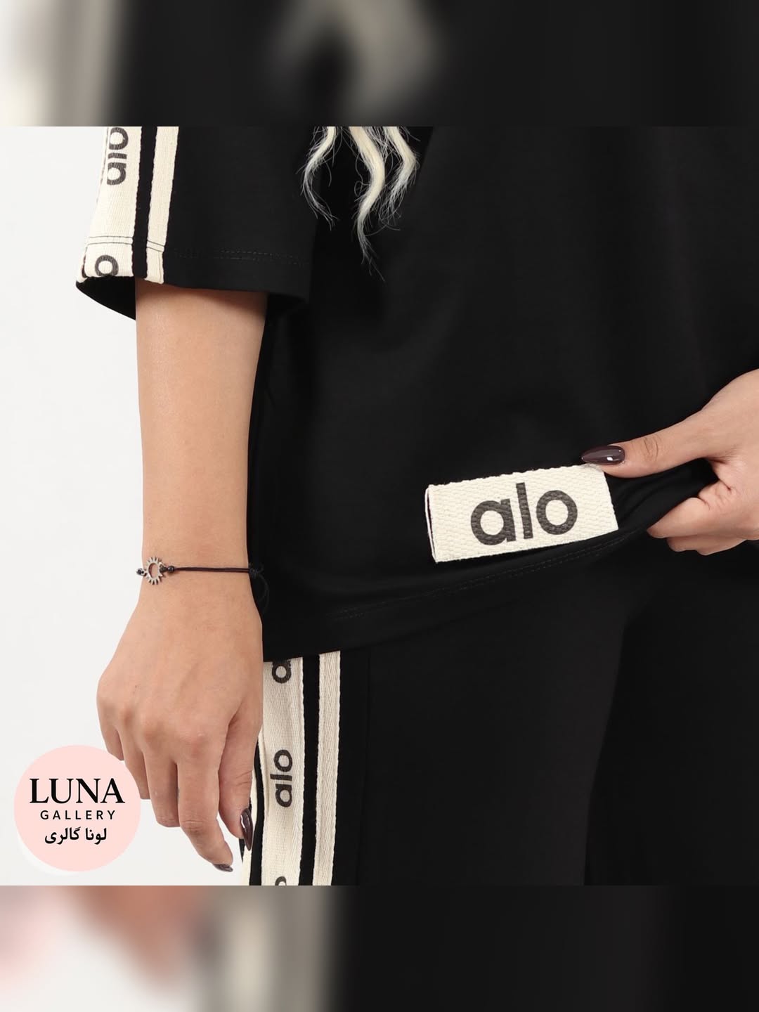 ست تیشرت باکسی و شلوار بگ alo سایزفری 38_46