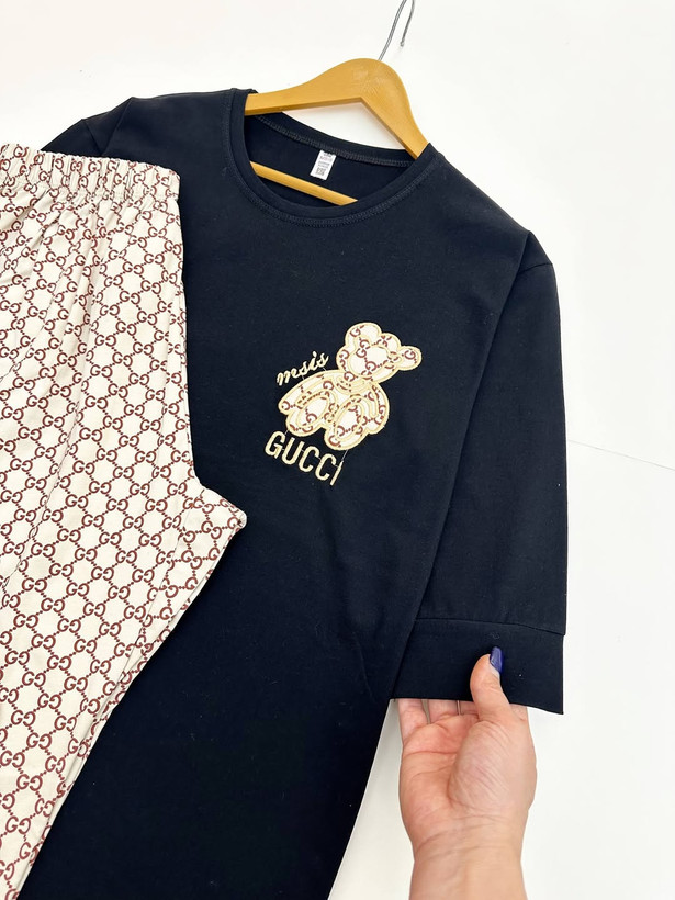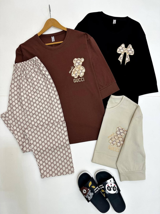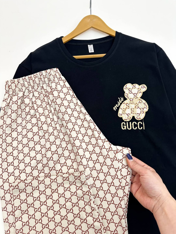 ست تیشرت شلوار gucci دوطرح ( تدی و پاپیون)